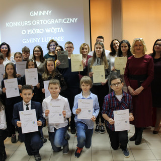 6 marca br. w naszej szkole odbył się Konkurs Ortograficzny o Pióro Wójta Gminy Lubanie. Wzięło w nim udział dziewiętnaścioro uczniów reprezentujących szkoły z Lubania, Przywieczerzyna i Ustronia. Uczestników przygotowali nauczyciele poloniści: pani Agnieszka Augustyniak, pani Angelika Chentkowska, pani Elżbieta Dzioba, pani Anna Kurdubska, pani Beata Pruchnicka i pan Mirosław Przekwas. Nagrodzone miejsca zdobyli uczniowie naszej szkoły. Zwyciężyła uczennica klasy 8b - Gabriela Zasada - przygotowana przez pana Mirosława Przekwasa. Drugie miejsce przypadło uczniowi klasy 6b Szymonowi Więconkowi, a trzecie uczennicy klasy 6a – Liwii Szprengiel. Uczniów tych przygotowała pani Elżbieta Dzioba. Zwycięzcom serdecznie gratulujemy!